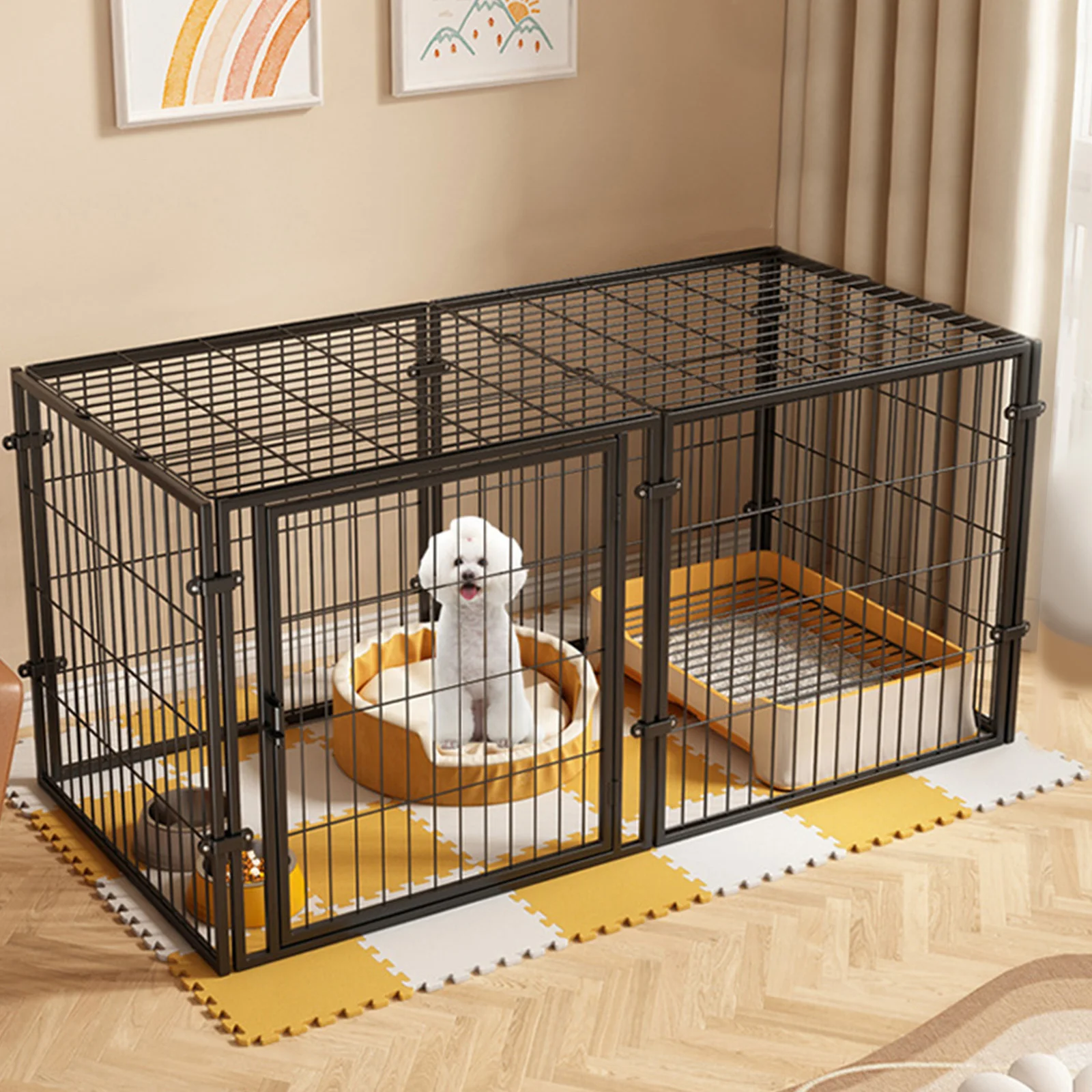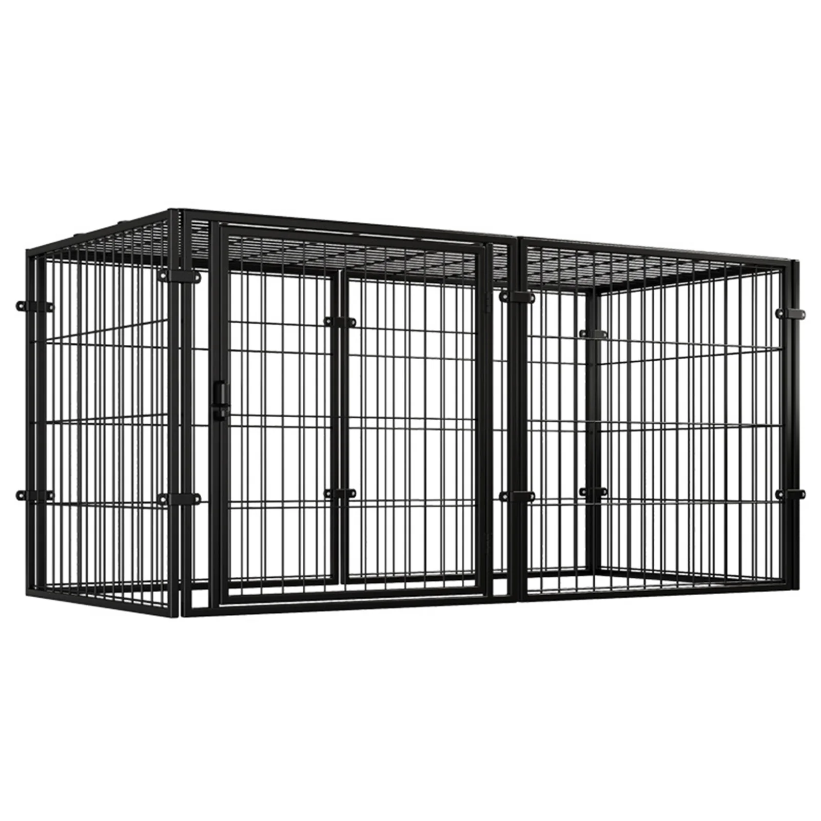 1.Reliable Security Structure: Built with a sturdy iron frame and reinforced steel wire interior, this puppy playpen ensures your furry friends are safely contained. The top cover design prevents escape, making it safe for all small pets.