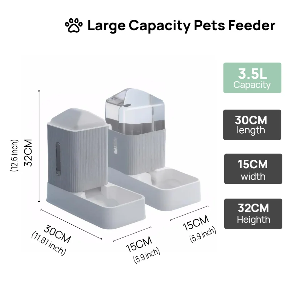 Each automatic cat feeder and water dispenser holds 3.5L—enough for ~7 days for small pets or ~3 days for large pets. Perfect for busy pet owners or short trips! -