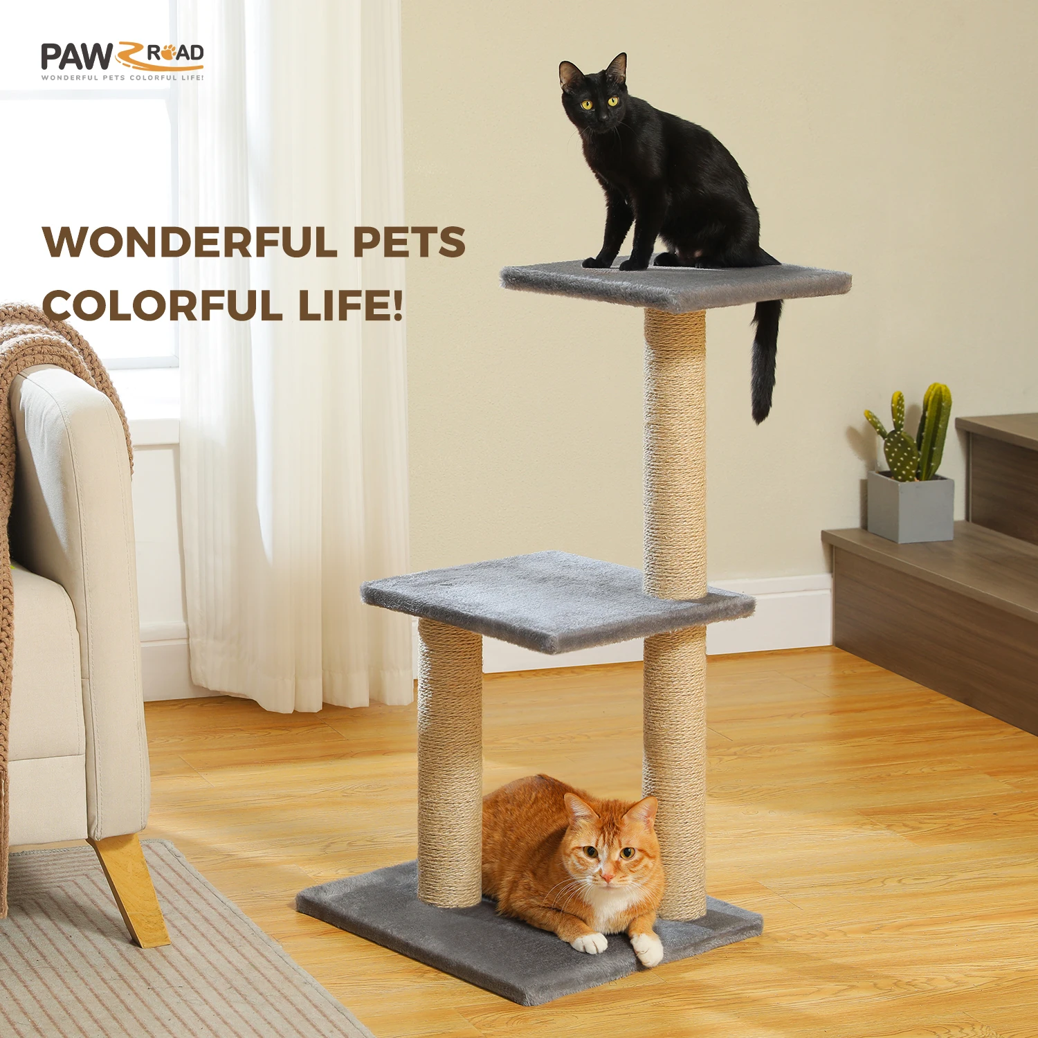 Activity Center: This small cat tree is suitable for multiple cats to play together. The big&soft cat condo provides your kitten a private house to have a rest while the deep cat hammock will be its favorite place to curl up. Not only that, your cats will have a bird view and look outside on the top perch.