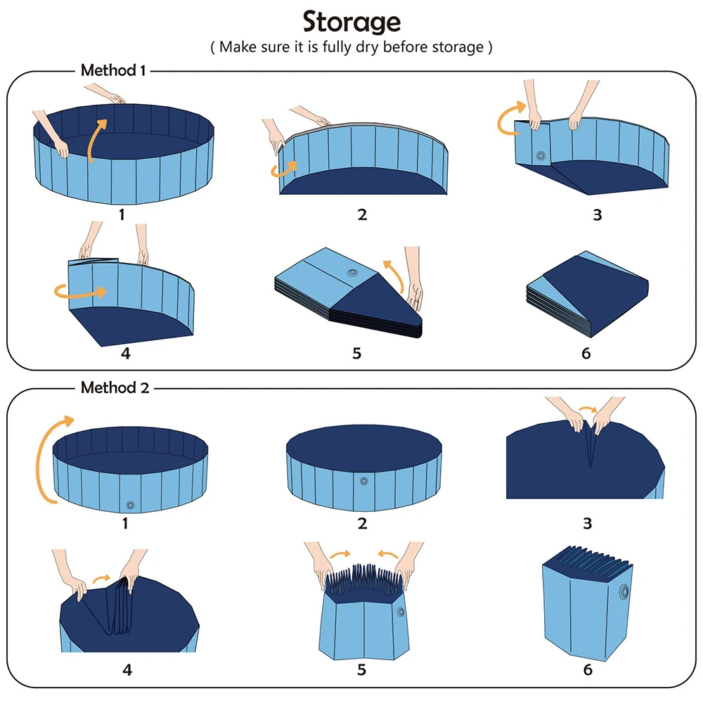 Only you need to do is a few seconds to fold it into a compact size. Just unfold the pool, fill it with water, and you can watch your dog or children play with it. You can store it in the corner or any narrow space in your room. It's easy to carry when outdoors or traveling for a convenient bath at any time.