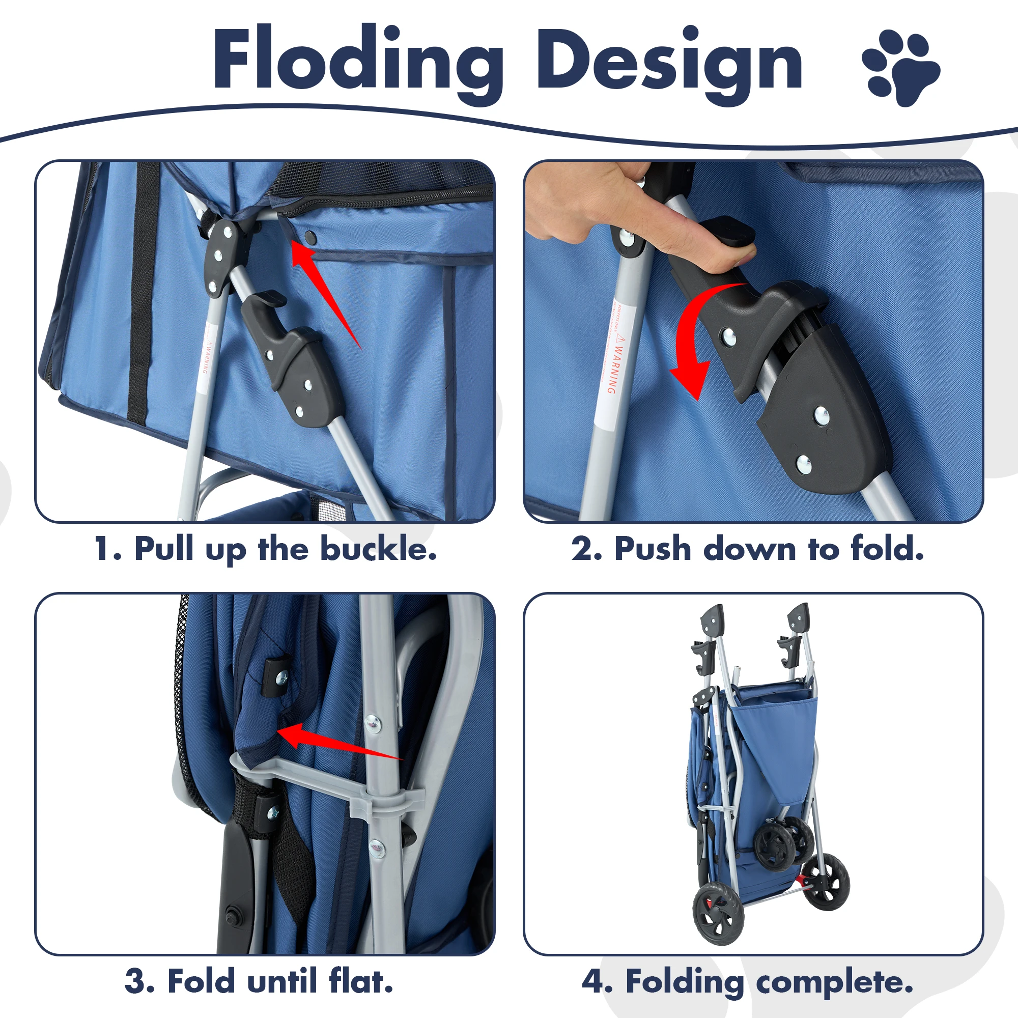 Extra Storage & Practical Design: Equipped with a large undercarriage basket and cup holders, this stroller offers ample storage for pet supplies, toys, snacks, and personal items. The waterproof fabric and easy-to-clean materials ensure hassle-free maintenance.
