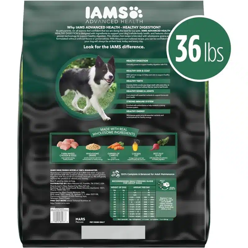IAMS Advanced Health Adult Healthy Digestion Dry Dog Food with Real Chicken, 36 lb. Bag