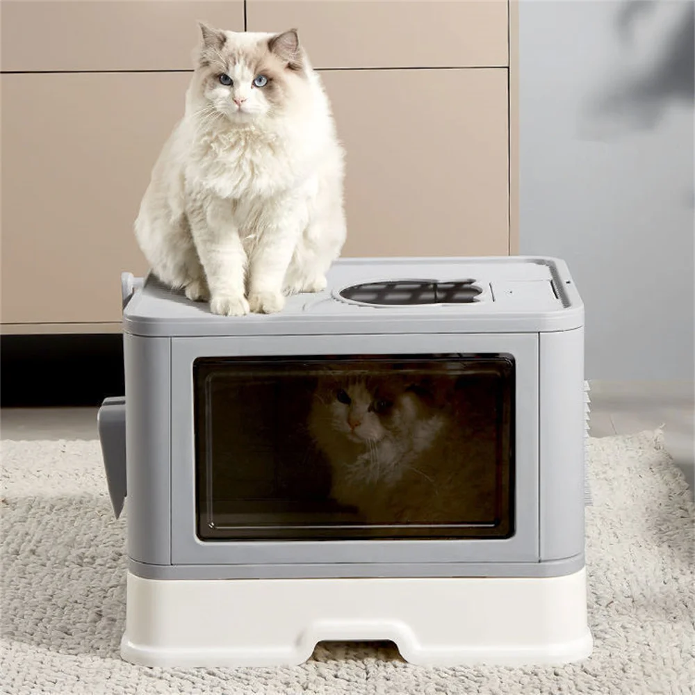 Cat-friendly Design – Through the study of cats' habits, the bottom-in and top-out design not only fully releases the nature of cats, but also effectively reduces the carry-out of litter, and the recoil when jumping out will shake off a large amount of litter, Therefore, the front door only goes in and out to prevent cats from bringing out litter, while the top door can go in and out at will, allowing cats to jump freely and release energy for added fun
