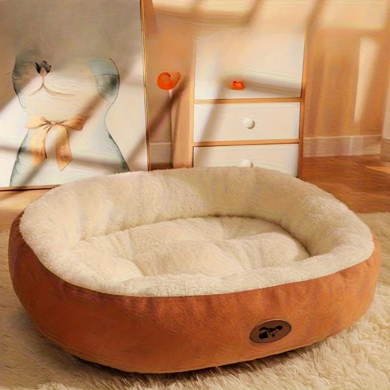 Plush Oval Pet Bed for Dogs and Cats