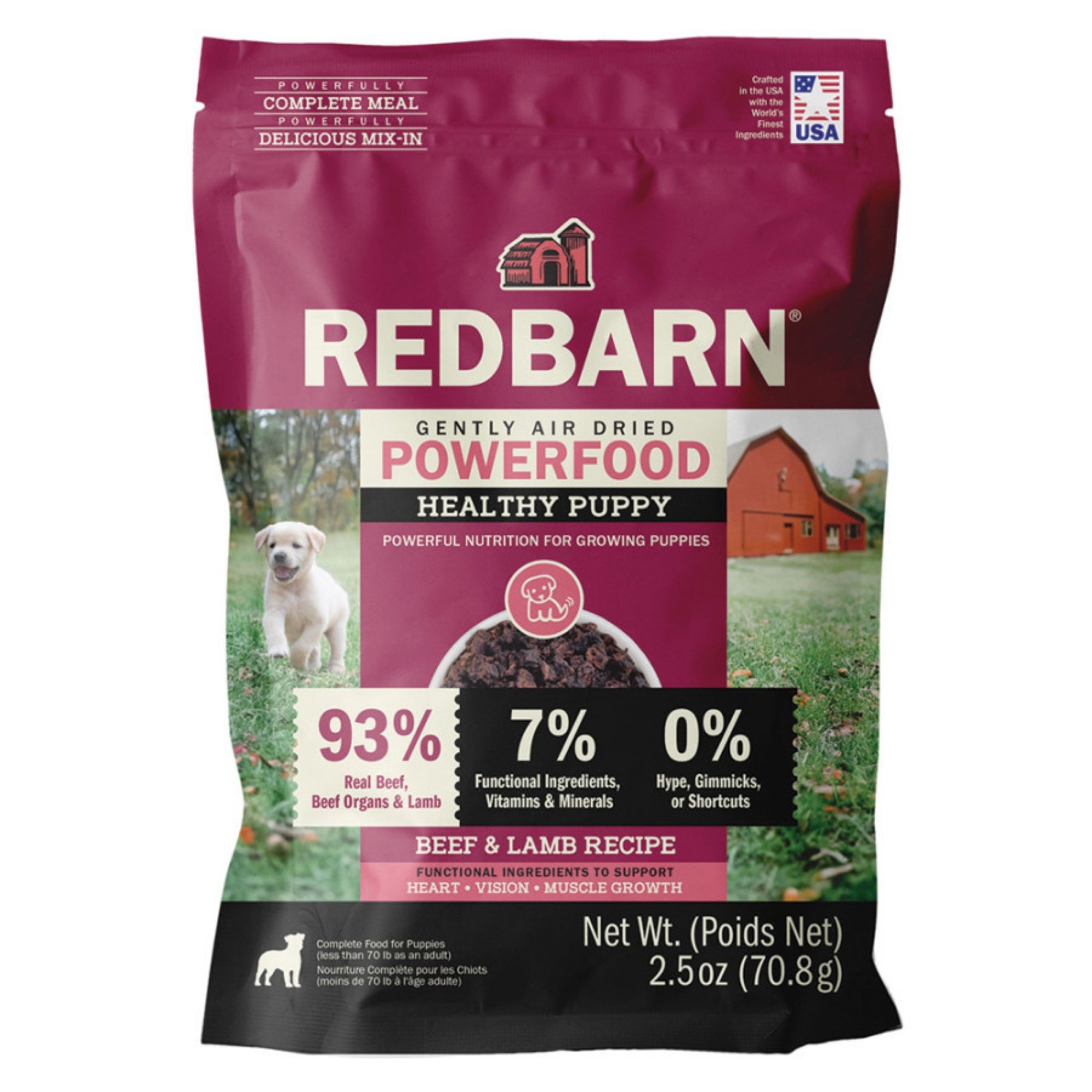 Redbarn Healthy Puppy Gently Air Dried Beef & Lamb Powerfood delivers powerful nutrition for growing puppies. This versatile high protein-packed food can be served as a complete meal or a tasty topper or mix-in. It’s packed with powerful nutrition: beef, lamb, and nutrient-dense organ meats support muscle growth, energy, and vitality. Vitamins and minerals contribute to healthy skin, a shiny coat, and joint health. Powerful postbiotics and prebiotic fiber from flaxseed, miscanthus grass, dried yeast, and fructooligosaccharides support digestive health and immunity function.