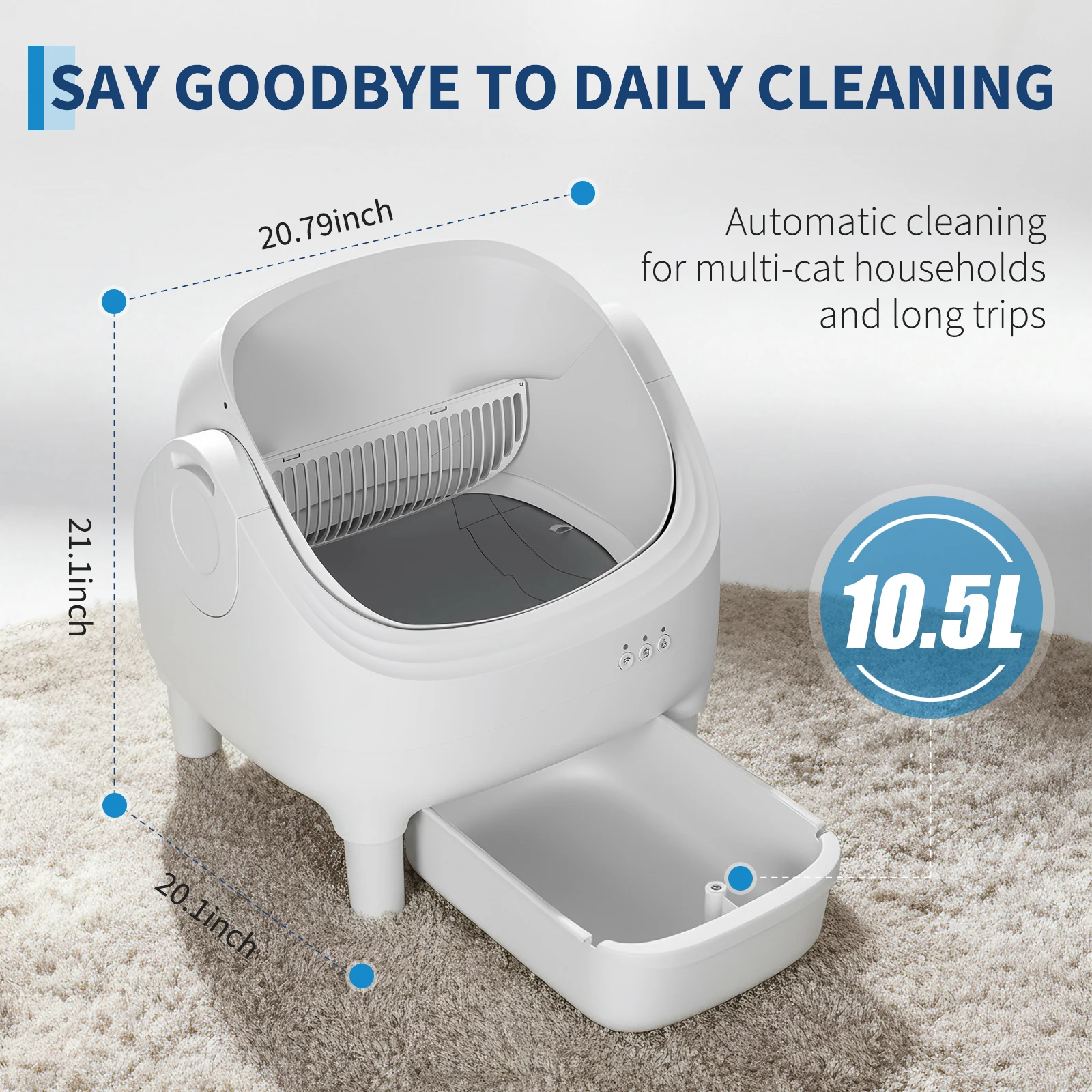 Self-Cleaning & Odor-Free: Automatically sifts waste into a 10L sealed bin, keeping your home fresh and eliminating daily scooping.