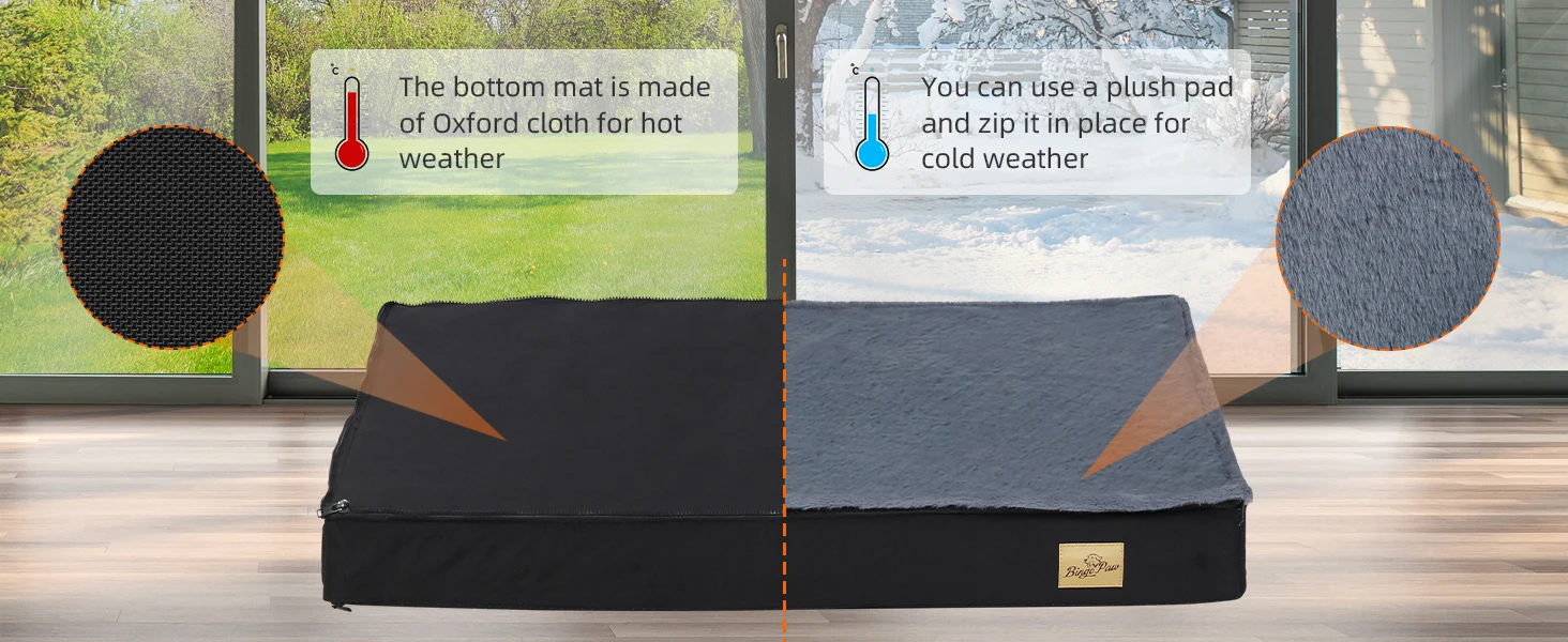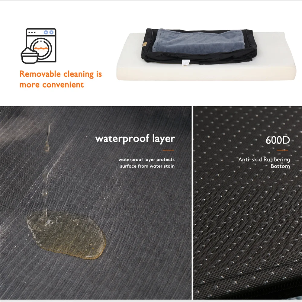 Water Resistant Washable Cover – The washable and removable cover with waterproof lining to keep the dog bed no more smell even when accident happens! Hidden zippers design can prevent hidden hazards, Oxford surface smooth and cooling in summer you can place a fluffy rug in winter